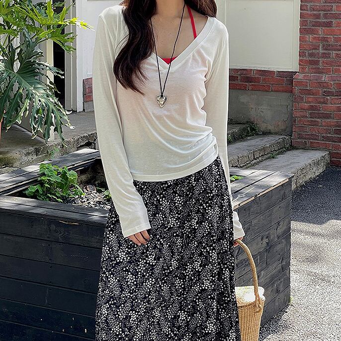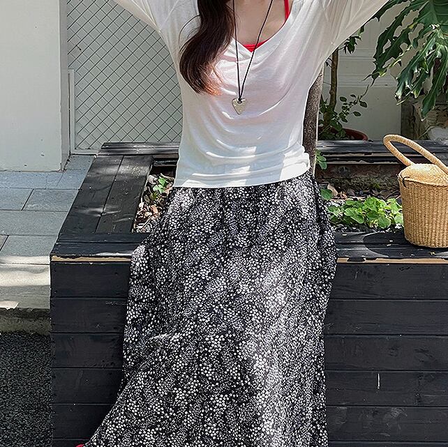 【ボトムス】フレンチレトロ 小花柄 ハイウエスト 着痩せスカート106063882